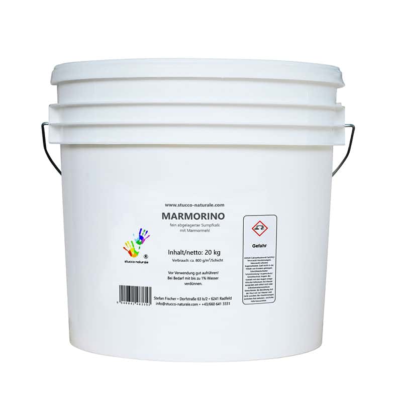 Stucco Marmorino ist ein reiner Kalkputz, hergestellt nach italienischem "Rezept" für seidenmatte oder seidenglänzende Beschichtungen, je nach Endbehandlung. Der Unterschied zu Stucco Veneziano ist die Kornstärke des Marmormehles. Dadurch hat der Marmorino ein mediterranes, wolkiges Erscheinungsbild und Stucco Veneziano hat eine ausgeprägte Marmorierung und der Glanz kann bis zum Hochglanz gebracht werden.