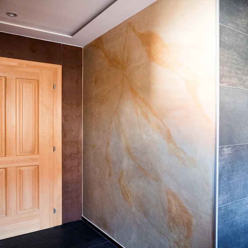 Der Kreativputz ist ein Marmorputz für verschiedene Techniken. Durch die feine Kornabstimmung ist er geeignet für Prägetechniken, Strukturtechniken mit unseren Spezialwerkzeugen aber auch für geglättete, seidenmatte Kalkputzoberflächen.