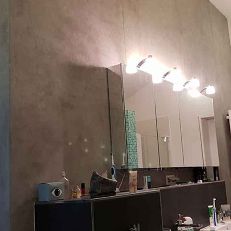 Durch den Auftrag von nur einer Schicht erreichen Sie eine Oberfläche, die einer echten Betonwand sehr ähnlich ist. Zusätzlich zur coolen Optik kommen noch die positiven Eigenschaften, die zu unserem Wohlbefinden beitragen:
