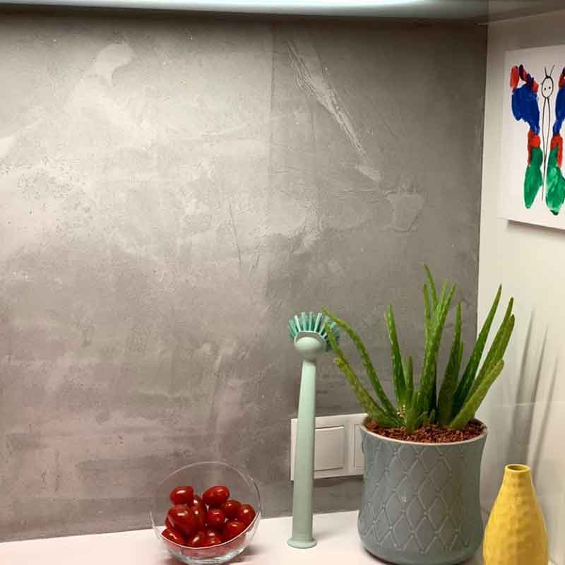 - Sumpfkalk-Spachtelmasse aus Marmormehl in betongrauem Farbton